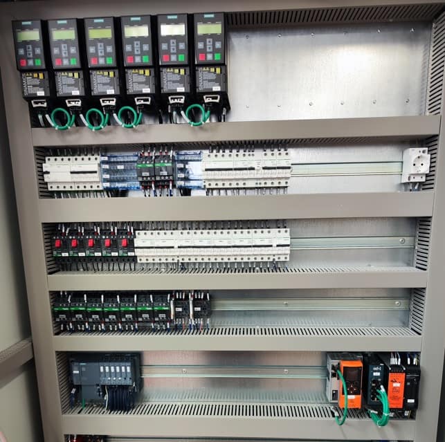 Nuestro equipo se puso a trabajar y después de un estudio en profundidad de las maniobras, programa del S5, sensores, encoder y actuadores, construimos un nuevo armario eléctrico con una S71500 SP, con variadores de frecuencia en Profinet, un nuevo maestro ASI IFM en PROFINET y un HMI de Siemens.